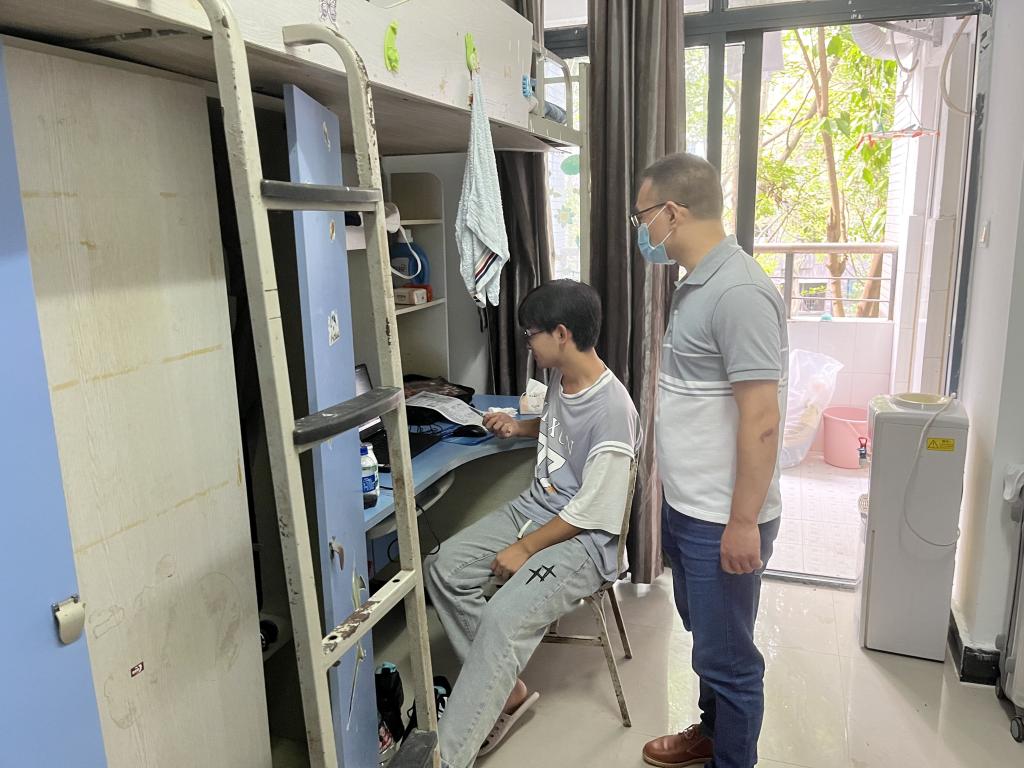 党委副书记李若岩、团委书记钟华以及辅导员前往嘉风苑、和风苑,逐一走访2022级新生寝室。