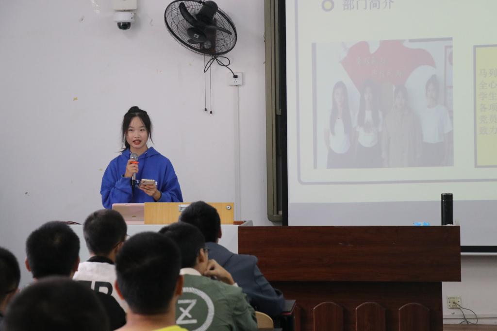 活动伊始,马列部、组织部、宣传部……等十四个团学部门依次进行宣讲。各部门宣讲人对各部门的部门职能、工作内容、团队建设、招新期待等方面进行讲解,不少部门也通过剪辑的视频来引起新生的兴趣,展示部门独特的魅力。激情洋溢的宣讲、精彩纷呈的部门、引人入胜的视频、逸趣横生的互动,宣讲人们用各自的方式让新生们体会到了团学会的活力与加入团学会后可以获得的成长与收获。世界杯决赛