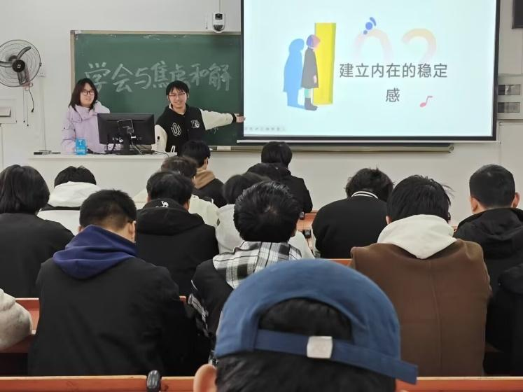 围绕心理落差议题,同学们坦诚分享了大学生活与理想预期之间的偏差,包括课程难度超出预期、自身能力不足引发的焦虑、人际关系磨合中的困惑等现实问题。各班心理委员引导大家理性认知:心理落差并非消极负面的信号,而是个人成长过程中常见的心理调节节点,其核心价值在于提醒个体审视自身状态、合理调整目标,以更贴合实际的路径重新规划前行方向。在持续深入的班会交流中,同学们逐渐以更温和、更理性的视角看待自我处境,有效缓解了心理失衡感。