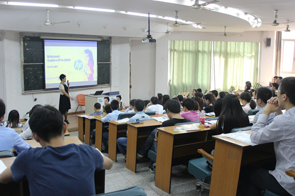沙坪坝校区隆重举办惠普专场招聘会。本次招聘会由惠普重庆人力资源部经理邹尹萍、惠普技术总监William Shen主讲,计信世界杯决赛