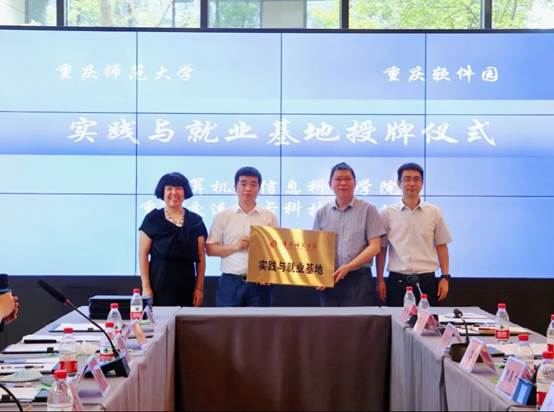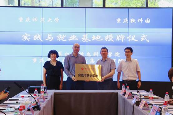向重庆交运城卡科技有限公司、重庆康洲大数据(集团)有限公司,授予“实践与就业基地”牌匾。