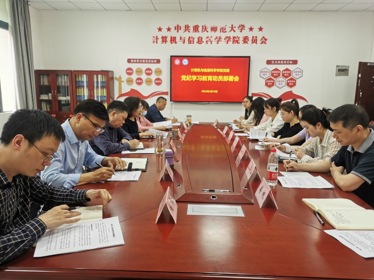 党纪学习教育专题部署会和张艳书记重要讲话精神,组织学习重师委发(2024)18号《关于在全校开展党纪学习教育的实施方案》文件。