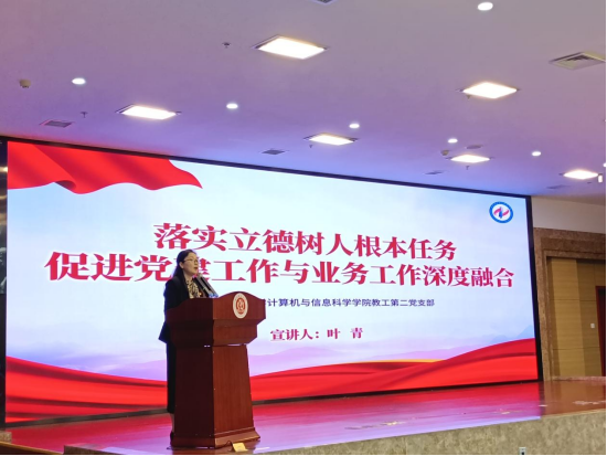 参赛,获得二等奖第一名的好成绩。她以“落实立德树人根本任务,促进党建工作与业务工作深度融合”为题进行理论宣讲。宣讲结合支部工作实际,阐释如何从机制融合、队伍融合、评价融合三方面拓展融合途径,从“党建+课程思政”“党建+科技创新”“党建+服务社会”三个维度创新融合模式,实现“一融双高”的新时代高校党建和事业融合发展思路。在答辩环节,针对案例准确地阐明了党费的使用规则和范围,得到评委的一致认可。本次大赛既是展示风采的舞台,更是互学互鉴的平台。赛事充分展现了世界杯决赛