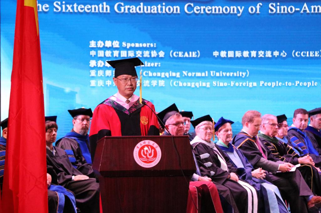副校长杨如安博士致辞,中美双方各大学向第十六届毕业生颁发毕业学位证书,宣布关于表彰优秀毕业生的决定,为优秀毕业生颁奖以及毕业生代表发言七项议程。典礼初世界杯决赛