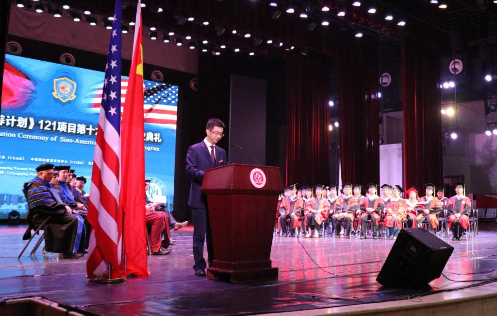为了提升学生专业领域素质,与国际接轨,并加强中美文化交流,培养更多的国际化人才,《中美人才培养计划》121计划从2001年开始至今已顺利开展了18年。2019年6月19日下午14:30,《中美人才培养计划》121项目第十六届学生毕业典礼于世界杯决赛
