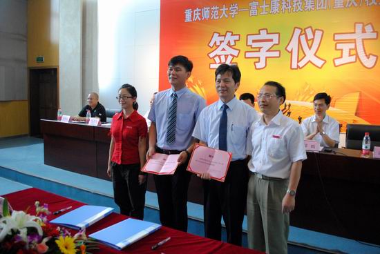 与富士康科技集团(重庆)的校企合作签约仪式在图书馆陈性初报告厅举行。教务处、学生处、计信世界杯决赛
