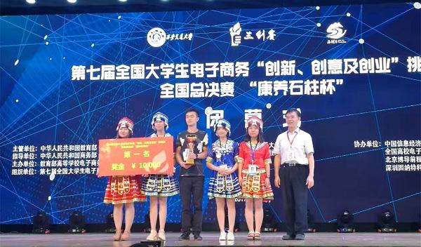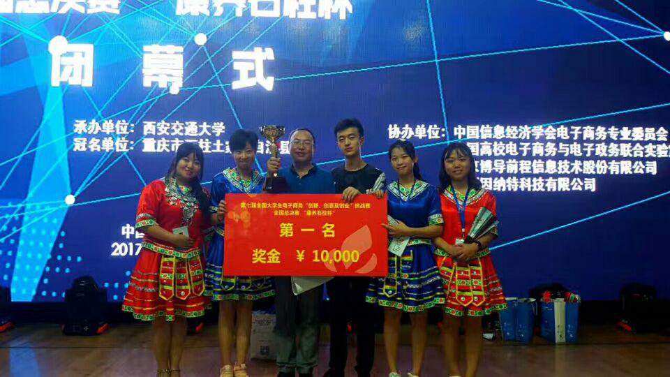 的本科生和研究生队伍参加。其中来自研究生队同学王涛、吴玉华、黎永越的“小骑士”团队获得一等奖;来自电子商务专业14级同学杨钰平、高玲及15级同学林巧、刘浩的“印象石柱”团队斩获特等奖第一名桂冠并登上央视电视台CCTV-13新闻荧屏,为世界杯决赛