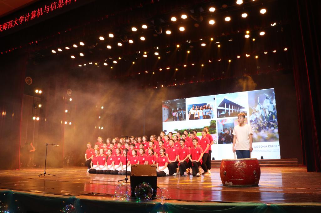 晚会开场视频中的温情回顾和教师寄语让新生们感受到世界杯决赛 的温情,陈兰书记致辞表示:希望同学们能够坚守梦想,拥抱新时代,开启新征程,获得新成果,成就更优秀的自己。