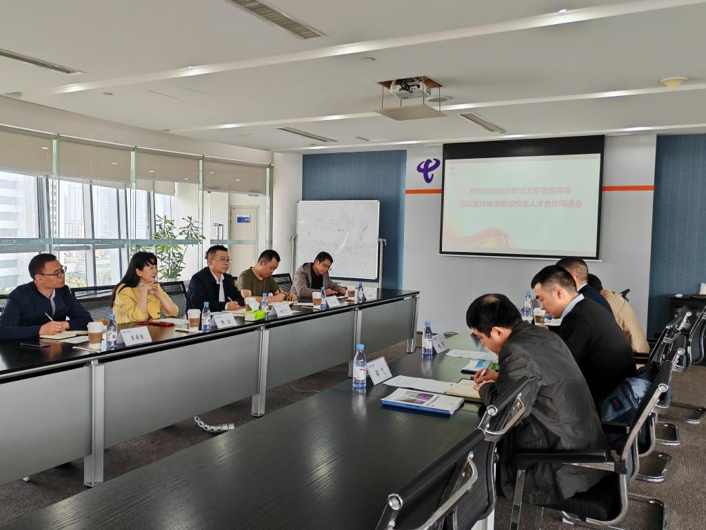 党委副书记李若岩及系主任朱德利,前往中国电信重庆公司,开展访企拓岗工作。中国电信重庆公司人力资源部总经理陈松、政企信息服务事业群总经理杨军、人力资源部副总经理吴云、IT能力中心副总经理邵飞、人力资源部人才开发室经理李娣华参加对接会。
