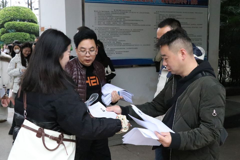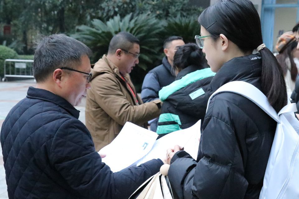 积极参与招聘准备工作,在考试各环节坚持人性化服务,想考生之所想、急考生之所急、解考生之所难。结合工作实际,在就业指导中心设立报道点,同时联系校区弘德楼设立笔试、面试和候考场地。为确保招聘工作的公平、公正、公开,参考学生要通过现场确认、笔试、面试三个阶段完成应聘流程。石柱县教委老师们在现场确认环节向毕业生详细介绍了工作环境、招聘条件和福利待遇等相关信息。